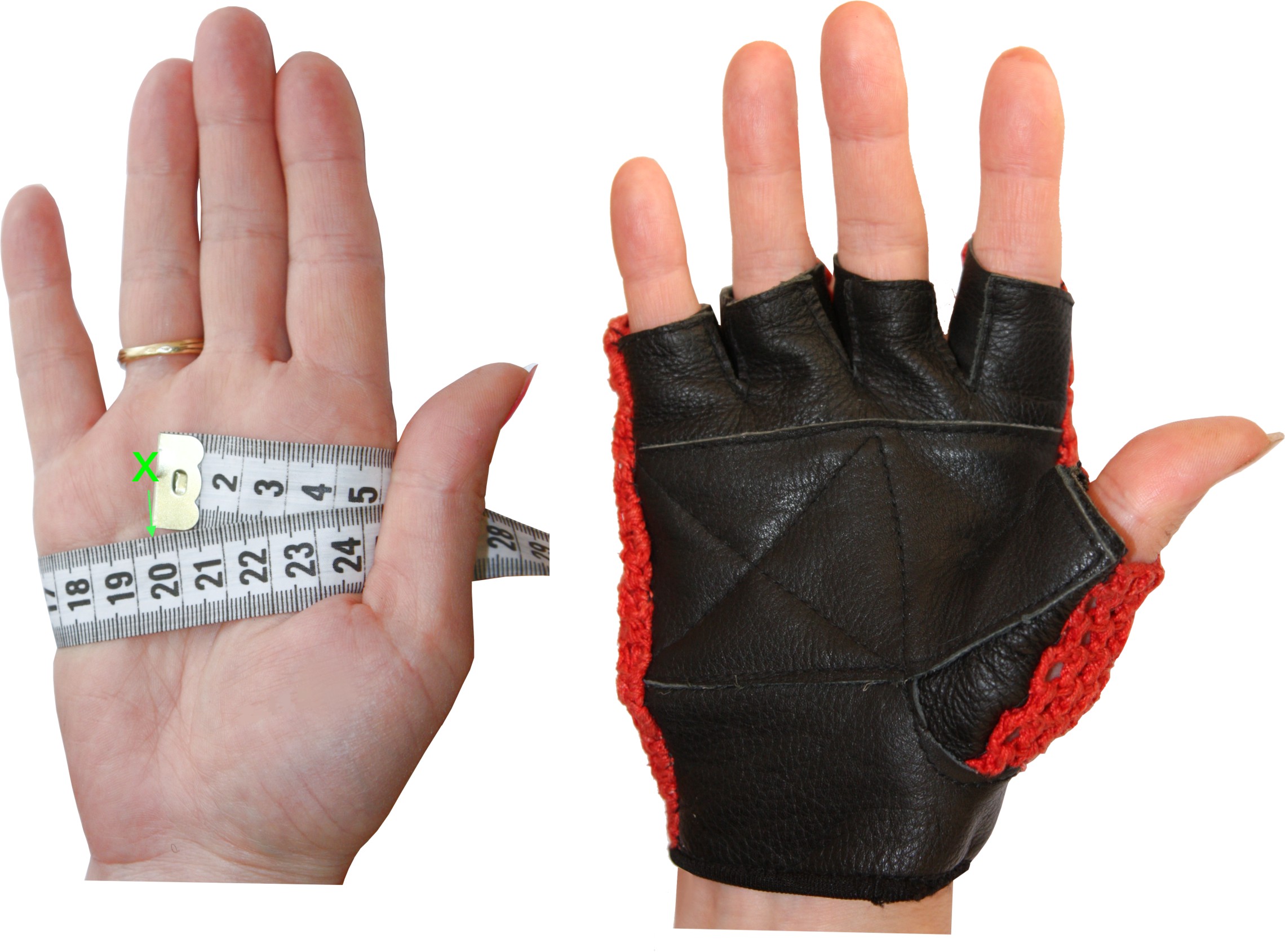 Для определения размера надо измерить ладонь так, как показано на фото и разделить на 2.S -- до 9 см. M -- от 9 до 10 см. L -- от 10 см.
