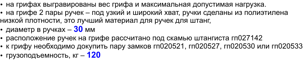 Гриф для штанги Leco-IT Pro на диам. 30 мм, 150 см, на 120 кг, вес 6,5 кг